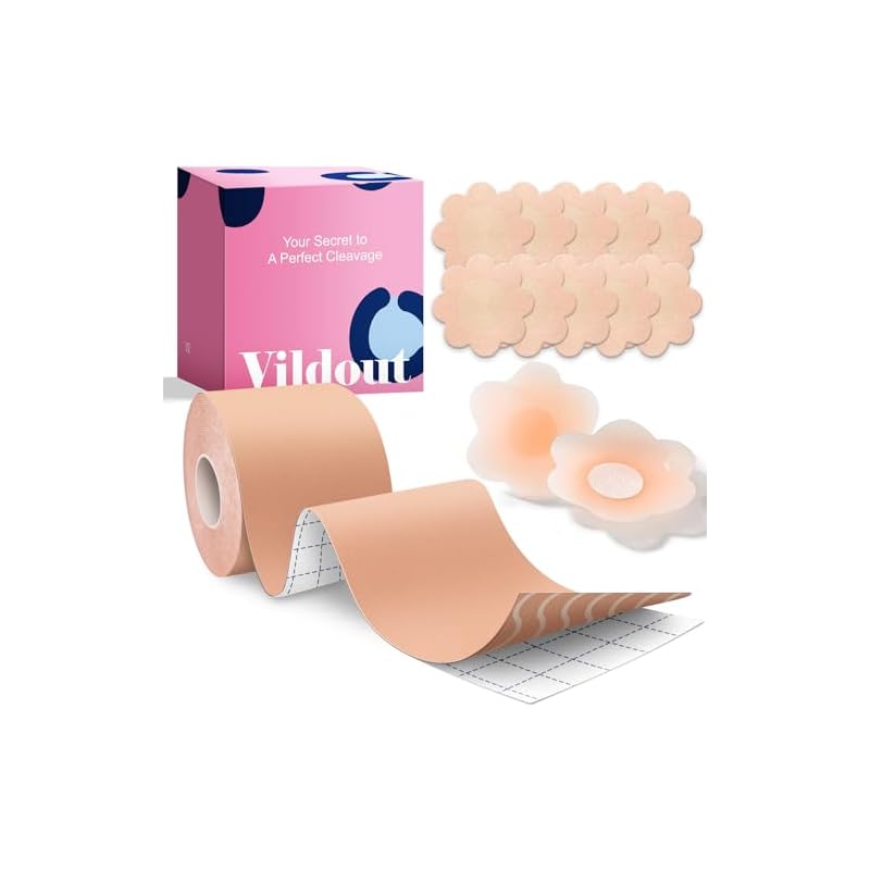 Especificaciones: Kit de cinta adhesiva para senos – Cinta adhesiva transpirable para levantamiento de senos con pétalos y cubiertas, cinta adhesiva transpirable para sujetadores, cinta push up para senos