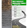 【Reemplazo y verificación de ajuste】Reemplaza cada 12 meses o 12.000 millas. Si el aire acondicionado emite mal olor o la potencia del motor cae, reemplace inmediatamente. Antes de comprar, usa la herramienta «Mi Garaje» de Amazon arriba para confirmar la compatibilidad con tu vehículo.