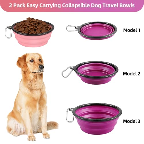 Kytely Tazones grandes plegables para perros, paquete de 2 tazones plegables de viaje para perros de 34 onzas, cuenco portátil para alimentos para mascotas con cierre, plato de alimentación para