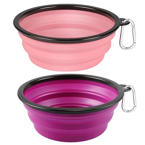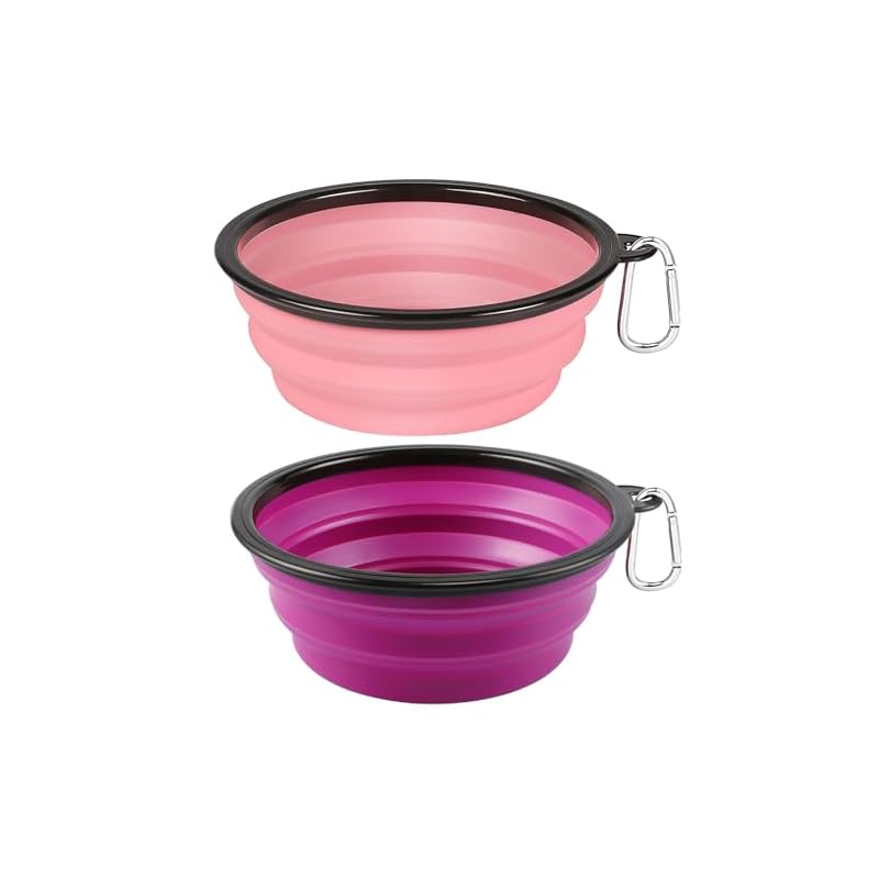 Especificaciones: Kytely Tazones grandes plegables para perros, paquete de 2 tazones plegables de viaje para perros de 34 onzas, cuenco portátil para alimentos para mascotas con cierre, plato de alimentación para