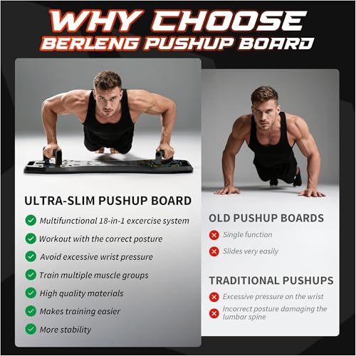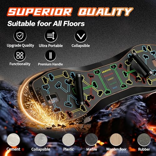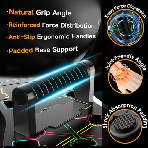 Tabla de empuje multifuncional para entrenamiento específico. Logra un compromiso muscular preciso con nuestra tabla de empuje de diseño inteligente. Las guías de colocación de L. a. mano codificadas por colores garantizan que aísles y trabajes eficazmente tu pecho, tríceps, hombros, espalda y núcleo durante varias variaciones de flexión, reduciendo el riesgo de tensión y forma inadecuada. L. a. base antideslizante proporciona una estabilidad inquebrantable en cualquier superficie del suelo