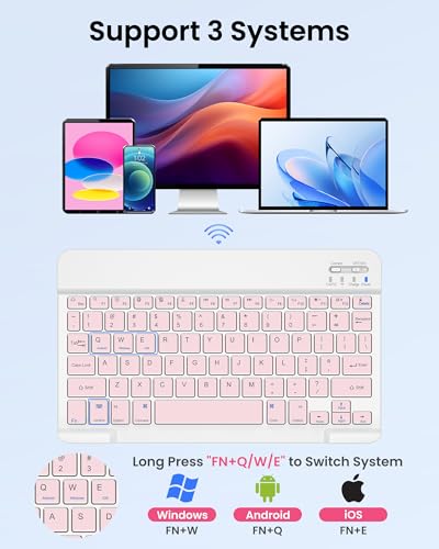 [Suspensión/encendido automático con batería de larga duración]: batería de iones de litio premium integrada con modo de ahorro de energía, proporcionando un tiempo de trabajo continuo de al menos 100 horas y 100 días de tiempo en espera con una carga completa. (NOTA: Cargue el teclado durante aproximadamente 2-3 horas antes del primer uso). Se duerme o se despierta automáticamente cuando la funda está cerrada o abierta, lo que preserva la duración de la batería, reduciendo el consumo de energía y prolongando la longevidad del dispositivo.