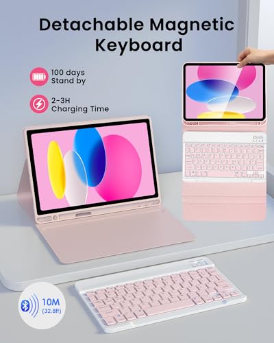 LAMA Funda de teclado para iPad con mouse y bolígrafo para iPad (A16) 11ª generación 2025/10ª generación 2022, funda de teclado desmontable para 11 pulgadas, 11ª/10.9 pulgadas, 10ª generación