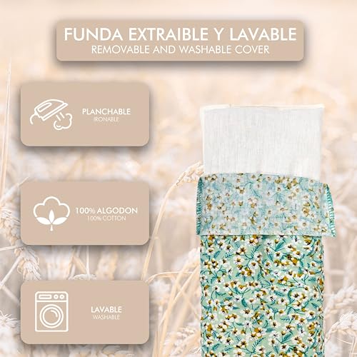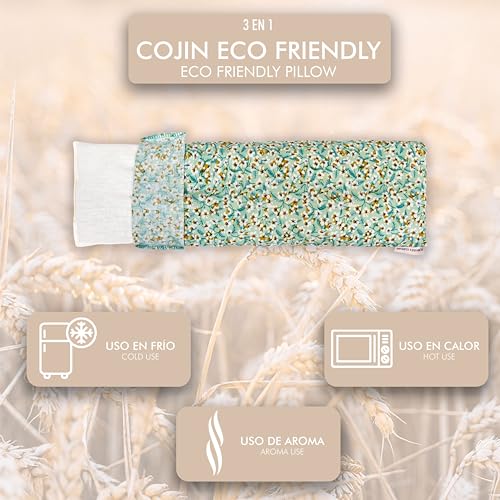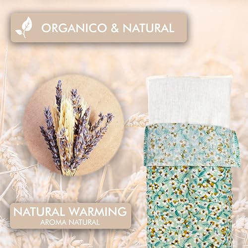 Especificaciones: LAMARE Cojín Saco térmico de Semillas de Trigo y Lavanda 48 x 15 cm Funda Lavable 100% algodón – Cojín térmico para cervicales y cólicos para terapias en frío y Calor. (Flor Aqua)