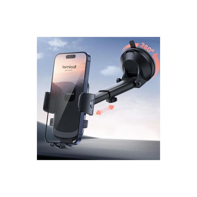 Especificaciones: Lamicall Soporte de teléfono para automóvil – [Ventosa de grado militar más fuerte] Soporte de teléfono con rotación de 360° para tu coche, liberación rápida, ajustable, montaje de teléfono para el