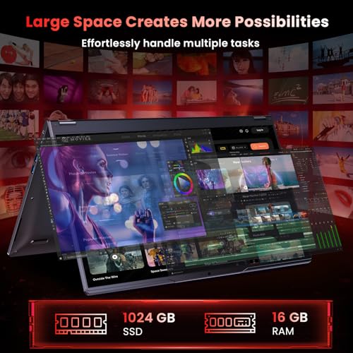 Amplia memoria y almacenamiento masivo: con 16 GB de RAM y un SSD de 1024 GB, este portátil convertible ofrece una multitarea fluida y un amplio espacio de almacenamiento. Experimente un acceso a datos más rápido y mantenga todos sus archivos, aplicaciones y medios esenciales al alcance de su mano