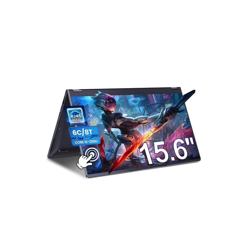 Laptop convertible de 15.6 pulgadas, computadora portátil con pantalla táctil 2 en 1 con procesador i3-1215U (6C/8T, hasta 4.4GHz), 16 GB de RAM, 1024 GB SSD, WiFi 6, BT5.2, RJ45, 57.75WH, para