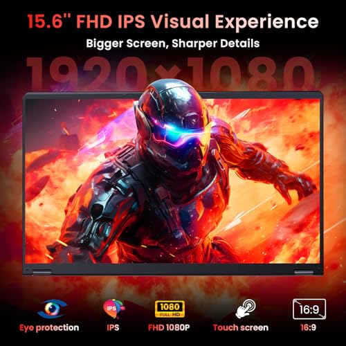 Pantalla IPS vibrante de 15,6″: este portátil plegable cuenta con una pantalla IPS FHD de 15,6″ con resolución de 1920×1080. La pantalla táctil capacitiva de 10 puntos ofrece imágenes impresionantes y un control suave e intuitivo para su experiencia informática 2 en 1