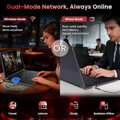 Potencia durante todo el día y conectividad dual: este portátil está equipado con una batería de alta capacidad de 57.75WH que soporta hasta 10 horas de uso continuo. Con Ethernet RJ45 estable y WiFi 6 de alta velocidad, garantiza conectividad ininterrumpida para videoconferencias, transmisión y trabajo remoto en cualquier entorno
