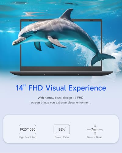 Configuración de pantalla triple: pantalla FHD de 14 pulgadas 1920 x 1080 + salida tipo C+HDMI 4K a 30 Hz que se enlaza suavemente a monitores externos, ideal para multitarea o compartir películas alegremente con familiares y amigos. Pantalla IPS con amplios ángulos de visión, colores vivos y detalles nítidos para una experiencia visual mejorada.