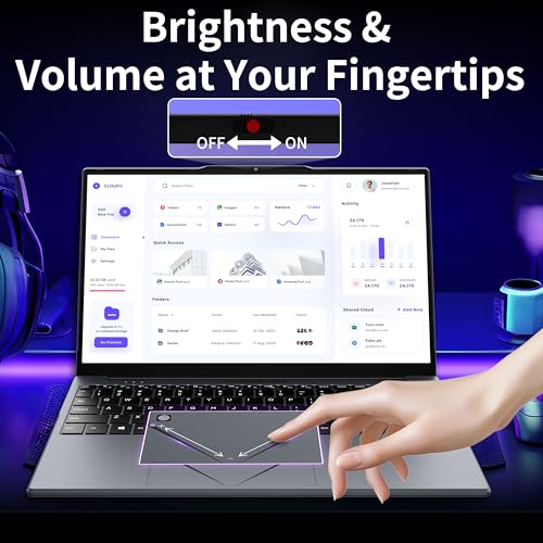 Innovadores controles para portátiles con panel táctil en forma de V: El exclusivo panel táctil en forma de V le permite ajustar el brillo (lado izquierdo) y el volumen (lado derecho) al instante. Esta función de laptop Ryzen 5 mejora la productividad sin interrumpir tu flujo de trabajo