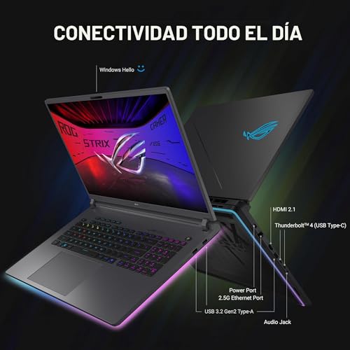 Especificaciones: Laptop gamer ASUS ROG Strix G18 (2025), 18 pulgadas, ROG Nebula 16:10 2.5K 240 Hz/3 ms, NVIDIA® GeForce RTX™ 5070, Intel® Core™ Ultra 9 275HX, DDR5-5600 de 32 GB, SSD PCIe Gen 4 de 2 TB, Wi-Fi 7