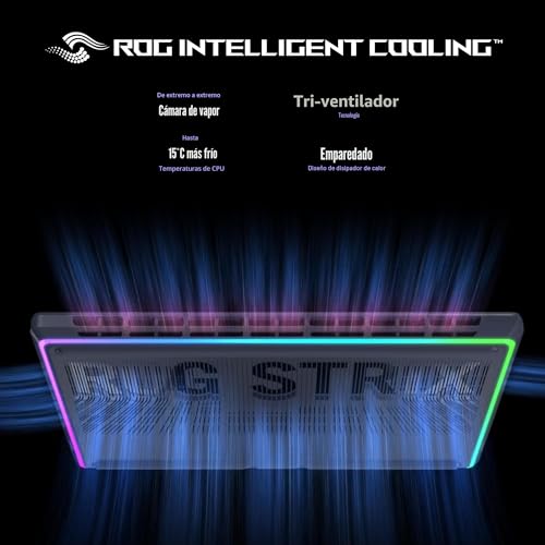 REFRIGERACIÓN INTELIGENTE ROG DE ÚLTIMA GENERACIÓN – Los angeles tecnología térmica avanzada de ROG mantiene tu sistema fresco, silencioso y cómodo. El enfriamiento de última generación equivale al mejor rendimiento de su clase. Con una cámara de vapor de extremo a extremo, diseño de disipador térmico intercalado y tecnología Tri-Fan.