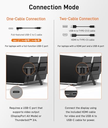 【Plug & Play Dual Monitor Setup】The Wixzet laptop screen extender offers true plug-and-play convenience—connect in seconds via USB-C (DP Alt Mode) or HDMI + USB-A, no drivers needed. Note: your laptop’s USB-C port must support video output (DisplayPort Alt Mode or Thunderbolt 3/4) for single-cable use; if not, use both the included HDMI and USB-A cables for video and power. Compatible with Windows, macOS, Chrome OS, Android/DeX, and 13–17″ laptops, it delivers a seamless dual-screen experience anywhere.
