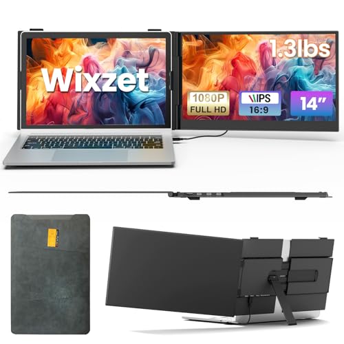 【FHD 1080P & Ultra-Wide Display】Enjoy stunning clarity with the 14-inch Full HD 1080P IPS display, featuring 300 nits brightness, 1000:1 contrast ratio, and 80% color gamut. The 178° ultra-wide viewing angle delivers sharp, vibrant visuals—ideal for work, streaming, design, or gaming. With flicker-free and anti-glare technology, the Wixzet portable monitor helps reduce eye strain, keeping you comfortable even during long hours of multitasking.