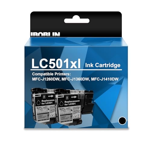 LC501XL Ink Cartridges Black High Yield Compatible for Brother LC501XL Ink for MFC-J1260DW, MFC-J1360DW, MFC-J1410DW (2Packs,with Chip)