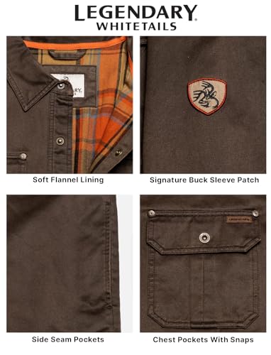 Legendary Whitetails Chaqueta tipo camisa con forro de franela para hombre, algodón encerado, resistente al agua