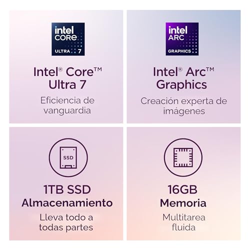Especificaciones: Lenovo Slim 7i Aura Edition – 2025 – Copilot+ PC – Procesador Core Ultra 7 256V – Pantalla OLED WUXGA de 14″ – Memoria de 16 GB – Almacenamiento de 1 TB – Gris Luna