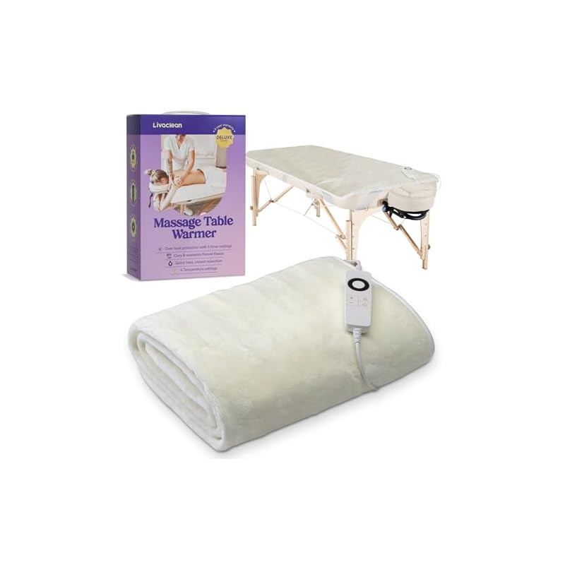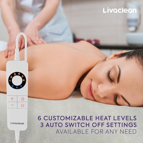 Especificaciones: Livaclean Calentador de mesa de masaje, almohadilla térmica – 6 ajustes de temperatura – 71 x 31.5 pulgadas – Calentador de cama de forro polar de franela suave – Almohadilla térmica eléctrica para