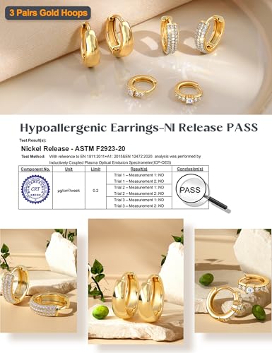 Especificaciones: LOLIAS Juego de 3 pares de aretes de aro de oro para mujer, de moda, gruesos, no se deslustra, rellenos de oro de 14 quilates, pequeños de oro/plata, hipoalergénicos, juego de aretes de oro
