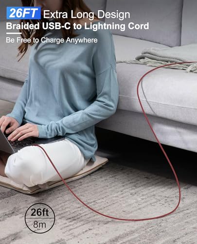 Long USB C to Lightning Cable 26FT Nylon Braided – Apple MFi Certified Extra Long Fast iPhone Charger Cord with PD Power Delivery & 480Mbps Data Transfer for iPhone 14, 13, 12, 11, X, XS, XR, 8, 7