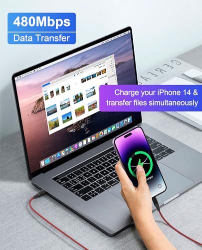 【PD Fast Charging & 480Mbps Data Sync】 Pair with an 18W (or higher) USB-C PD charger (not included) to fast-charge your iPhone, reaching up to 60% battery in just 30 minutes. This long iPhone charger cord doesn’t sacrifice speed for length. It also supports high-speed data transfer at 480Mbps, allowing you to quickly sync photos, videos, and files between your iPhone and computer.