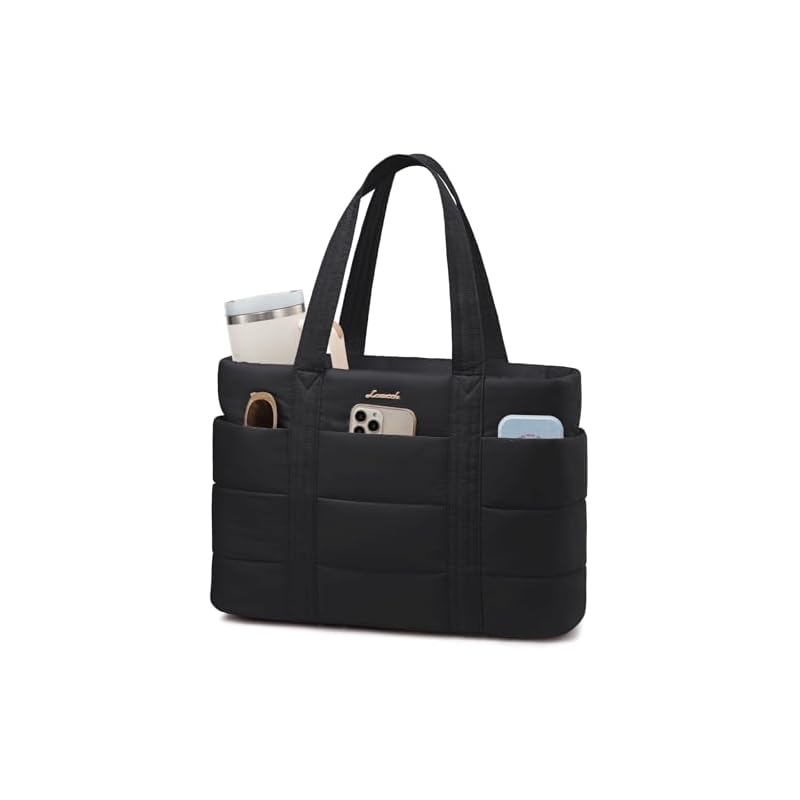 LOVEVOOK Bolsa de mano para mujer, bolsa grande acolchada para computadora portátil, bolsa de viaje ligera con cremallera, regalos para mujeres, Negro-b, 15,6 pulg.