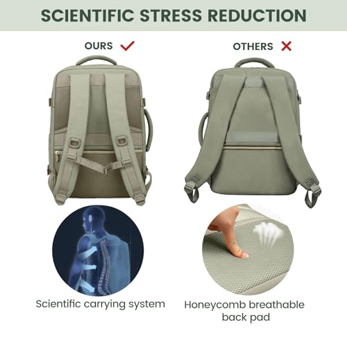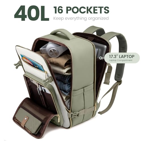 LOVEVOOK Mochila de viaje para mujer, mochila de transporte de 40 litros aprobada por vuelos, Verde y blanco, Mochilas de viaje