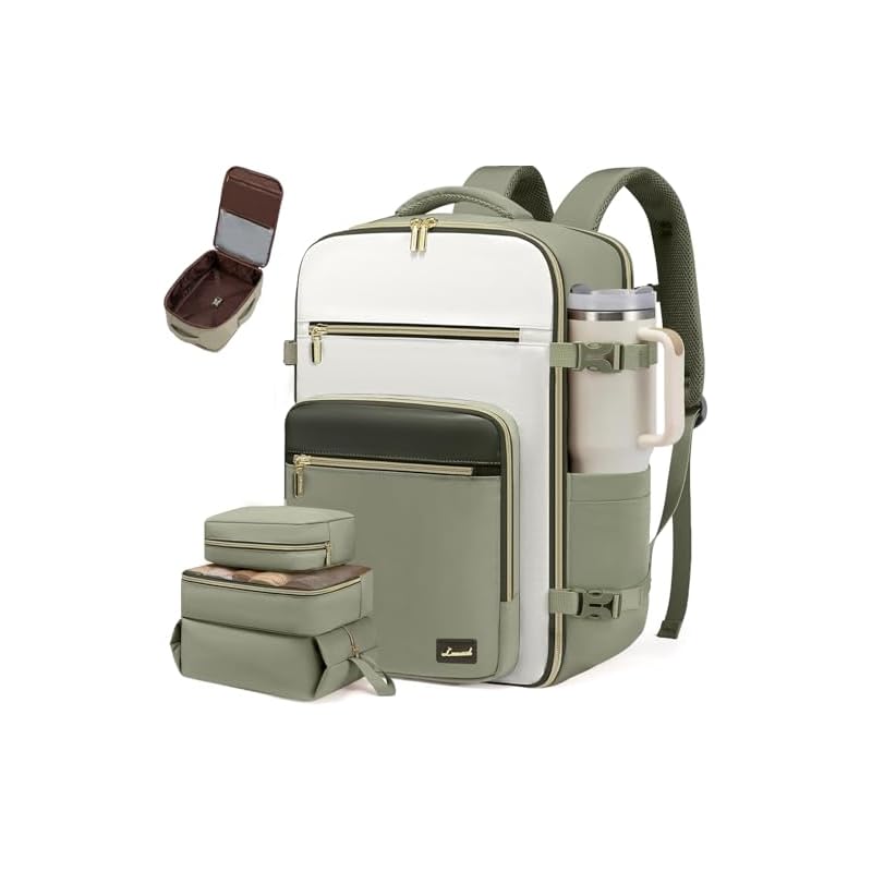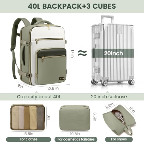 Especificaciones: LOVEVOOK Mochila de viaje para mujer, mochila de transporte de 40 litros aprobada por vuelos, Verde y blanco, Mochilas de viaje