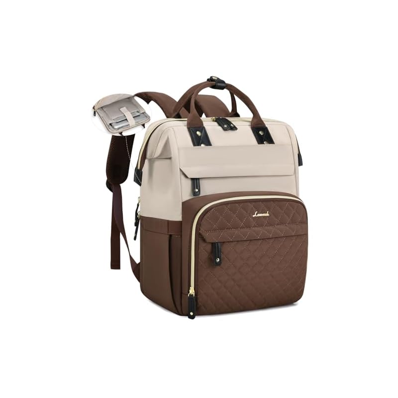 Especificaciones: LOVEVOOK Mochila para laptop para mujer, Café de almendras, 15,6 pulg., Elegante mochila acolchada para laptop para mujer