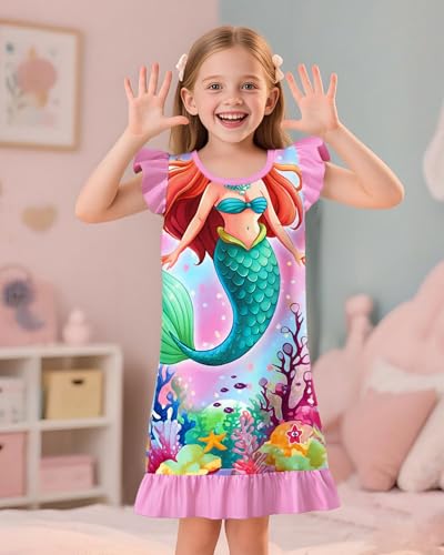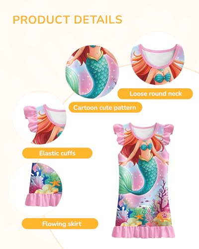 LQSZ 2 piezas de camisones para niñas de 3 a 10 años, vestido de noche de manga corta con volantes, pijama para dormir para niñas pequeñas
