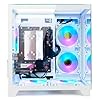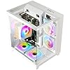 Diseño y extras: El PC está equipado con 5 ventiladores RGB y efectos de iluminación. Estas luces se pueden configurar de acuerdo con las preferencias del usuario, agregando un toque de color a la PC y mejorando el efecto visual general. El chasis está diseñado con panel de vidrio en tres lados, lo que permite a los usuarios visualizar el diseño interno del hardware y los efectos de iluminación. Al mismo tiempo, los paneles laterales de vidrio también garantizan un buen rendimiento de disipación de calor, asegurando que el hardware permanezca estable en un funcionamiento prolongado.