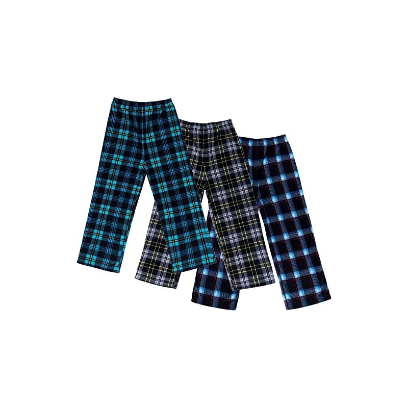 Mad Dog Concepts Pantalones de pijama para niños, pantalones de pijama de microforro polar suave para niños, estampado a cuadros, ropa de dormir para niños, talla 6 a 20, paquete de 3