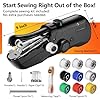 Especificaciones: Máquina de coser de mano, mini máquina de coser portátil para principiantes, máquina de coser pequeña electrónica para costura rápida y manualidades de bricolaje, kit completo de costura (negro)