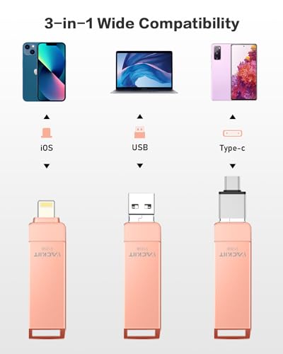 Especificaciones: Memorias flash 3.0 de alta velocidad con certificación MFi de 512 GB, memoria USB 3ni1, almacenamiento externo compatible con iPhone/PC/iPad/Android/más dispositivos para fotos y videos, transferencia