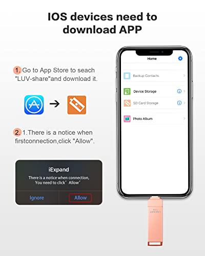 【Notas!!!】[1]. Los dispositivos iOS siempre deben mantener la pantalla encendida cuando se utiliza la unidad flash USB. [2]. Para garantizar la seguridad de los archivos, no exceda de 1 GB de tamaño para una sola transferencia de archivos (cuando transfiera desde su teléfono a la unidad flash USB) [3]. Mantén tu teléfono completamente cargado y se recomienda quitar la funda. [4]. Cuando utilices anormal, puedes solucionar problemas de acuerdo con el manual o ponerte en contacto con nosotros directamente a través de Amazon, y te responderemos en 24 horas.