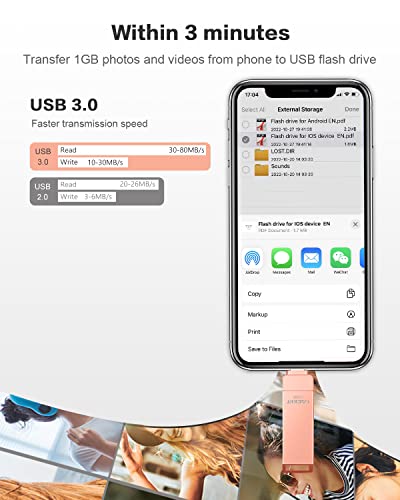 Transferencia rápida: el puerto USB 3.0 hace que esta unidad flash sea más rápida y estable para transferir archivos en tu computadora y hasta 1 GB de una vez (aproximadamente 3 minutos) en tu teléfono celular.