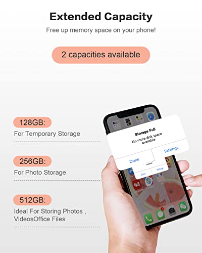 【Capacidad de expansión para tu teléfono】Este es un lápiz fotográfico con certificación MFi para el almacenamiento excesivo de fotos y videos para ayudarte a liberar la memoria de tu teléfono.