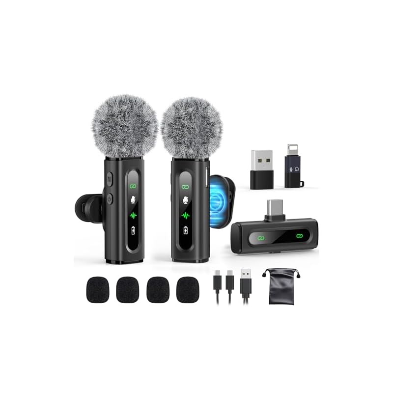 Sonido superior con denoisé activo: experimenta una claridad de sonido excepcional con el micrófono inalámbrico GoorDik USB C con tecnología avanzada de denoise activo. Con dos modos de reducción de ruido: modo de reducción de ruido y modo de sonido original. El micrófono inalámbrico con puerto C con clip está equipado con 2 manguitos peludos para parabrisas de micrófono para exteriores y 4 cubiertas de micrófono de espuma adicionales, lo que garantiza un audio nítido incluso en entornos ruidosos y ventosos