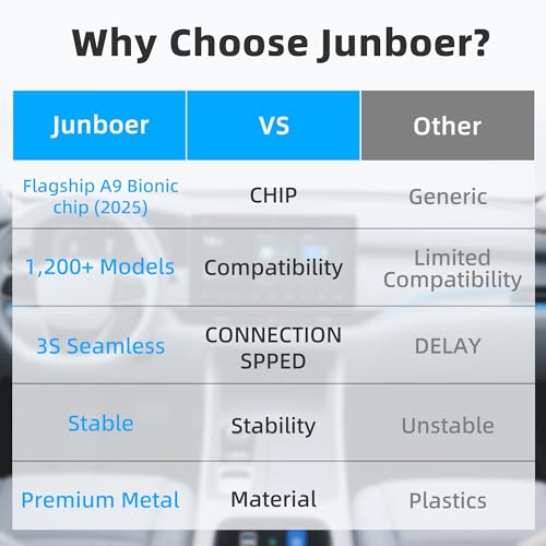 【Más de 1,200 coches, un adaptador】El adaptador inalámbrico Carplay Junboer funciona con más de 1200 modelos (2016+). Mantenga los controles de fábrica para música, navegación y Siri, ¡no se necesitan actualizaciones de automóviles!