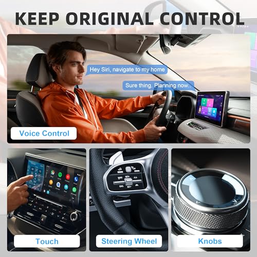 Control inteligente de 4 vías: botones del volante, pantalla táctil, perillas OEM o Siri? Este adaptador inalámbrico Carplay se adapta a tu estilo. Mantenga las manos en el volante, con los ojos adelante.