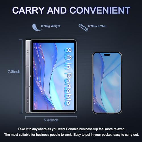 Portátil ultraportátil de 8 pulgadas: con un peso de solo 1.72 libras con un diseño compacto (7.795 in), esta mini computadora portátil compacta cabe sin esfuerzo en mochilas, bolsos o incluso bolsillos grandes, por lo que es perfecta para viajes, estudiantes y profesionales en movimiento