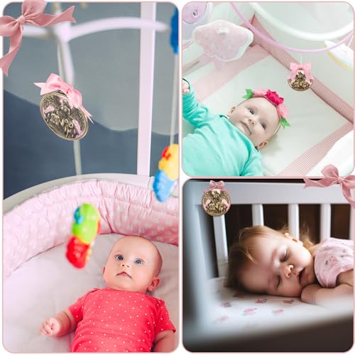 Misdary Cinta redonda de medalla de cuna de ángel guardián, decoración religiosa para bebé, bautismo, bautizo, regalo de recuerdo, 3 pulgadas (rosa)
