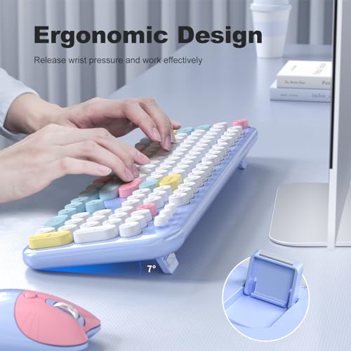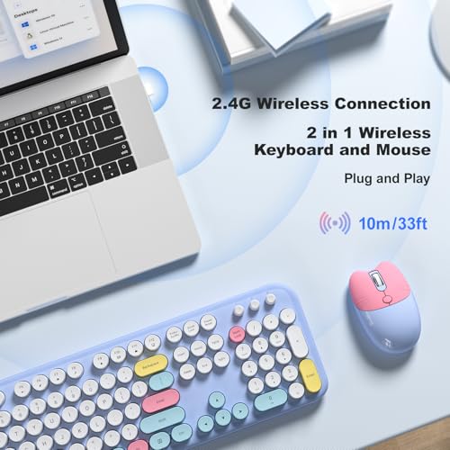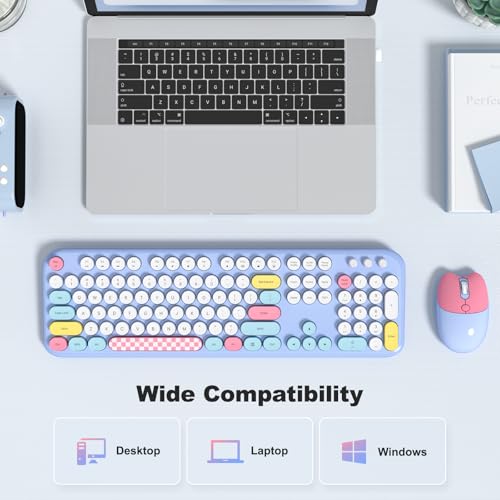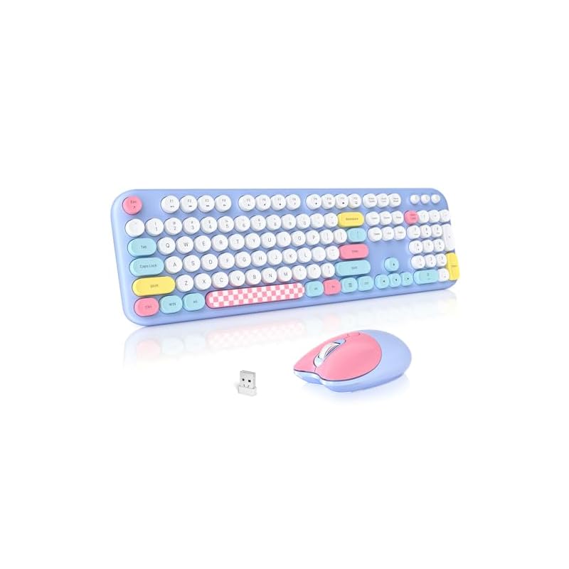 MOFII Combo de teclado y mouse inalámbricos, lindo teclado de tamaño completo y mouse inalámbrico, teclado retro de 2.4 GHz, juego de mouse inalámbrico para PC/computadora de escritorio, computadora portátil/Windows (azul pálido colorido)