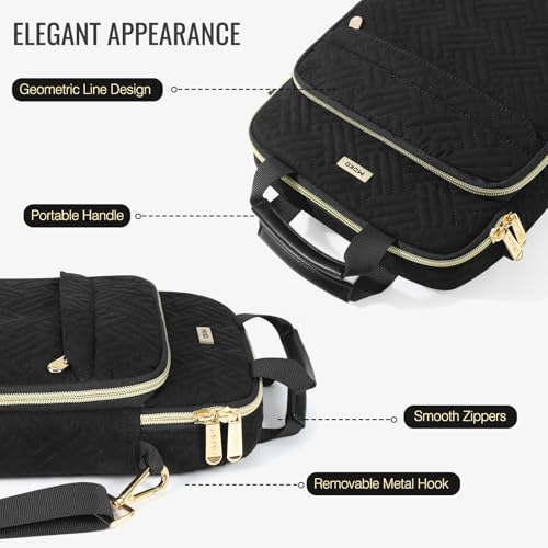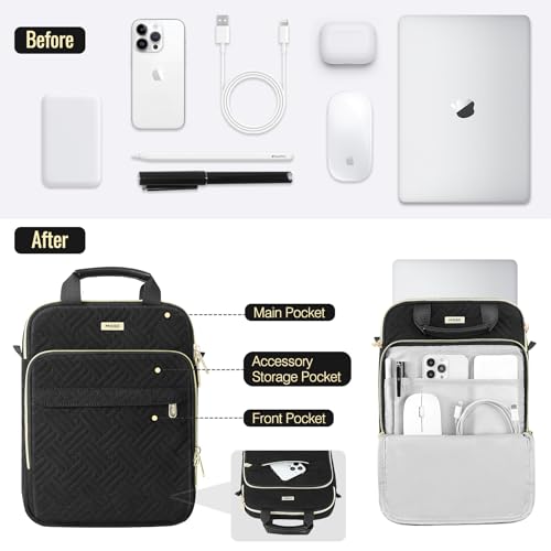 Aspecto exquisito y cremallera suave: las líneas geométricas y el aspecto negro hacen que esta funda para laptop de 13 a 14 pulgadas se vea simple y elegante. La cremallera de la funda para laptop con correa para el hombro se abre y cierra suavemente, incluso si se utiliza durante mucho tiempo, no será pegajosa y los artículos se pueden tomar y colocar rápidamente.