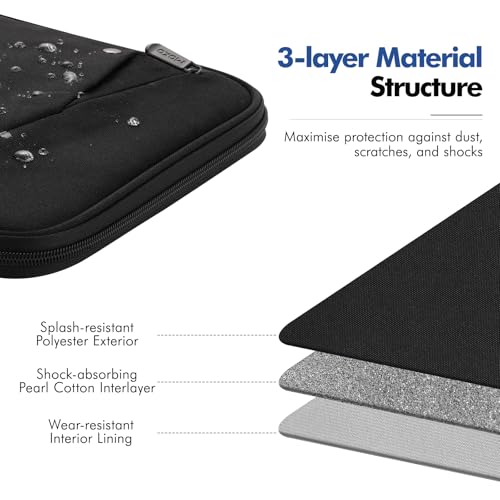 Excelente protección: con estructura de material de 3 capas con características de protección de exterior de poliéster resistente a las salpicaduras, capa intermedia de algodón perla que absorbe los golpes y forro interior resistente al desgaste, esta funda para laptop puede proteger tus dispositivos y otros artículos del polvo, arañazos y golpes.
