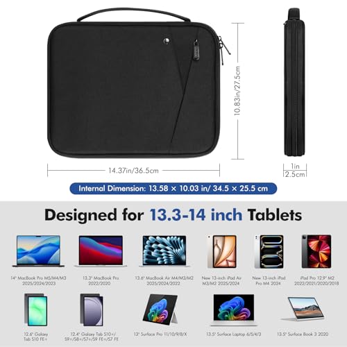 Funda universal para portátil: la funda de transporte para laptop está diseñada especialmente para portátiles de 13.3 a 14 pulgadas, como MacBook Pro M4/M3/M2/M1 Pro/Max de 13 pulgadas, MacBook Pro M2/M1 de 13 pulgadas, MacBook Air M4/M3/M2/M1 de 13 pulgadas, MacBook Air M3/M2 2025 2024, iPad Pro M4 2024 de 13 pulgadas, iPad Pro de 12.9 pulgadas M2 2022/2021/2020/2018, computadora portátil con superficie de 13.8 pulgadas, Surface Pro 11/10/9/8/X, Surface Laptop de 13.5 pulgadas 6/5/4/3, Surface Book 3 de 13.5 pulgadas 2020 34