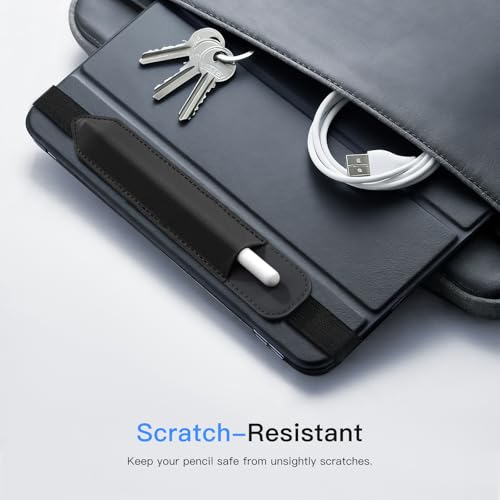 MoKo Funda para lápiz compatible con Apple Pencil (Pro y USB-C y 1ª y 2ª generación), bolsillo elástico desmontable para lápiz óptico con banda elástica unida a la funda del iPad, color negro