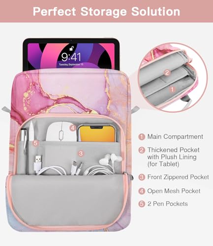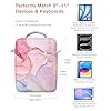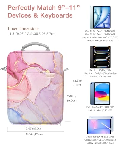 Especificaciones: MoKo Funda para tablet de 9 a 11 pulgadas, con asa para el hombro, se adapta a iPadAir M3 de 11 pulgadas, iPad A16 2025, Pro de 11 pulgadas, iPad 10/9/8/7ª generación, Tab S8/S9 de 11 pulgadas, rosa