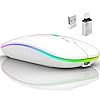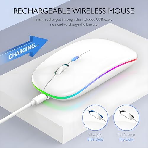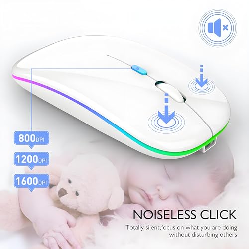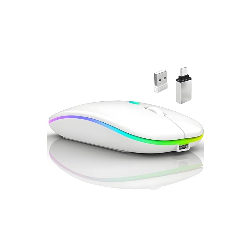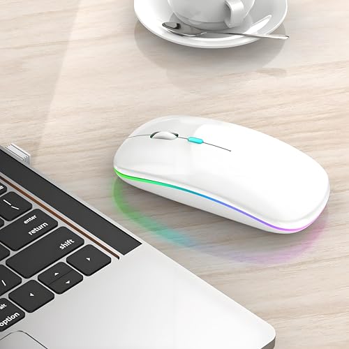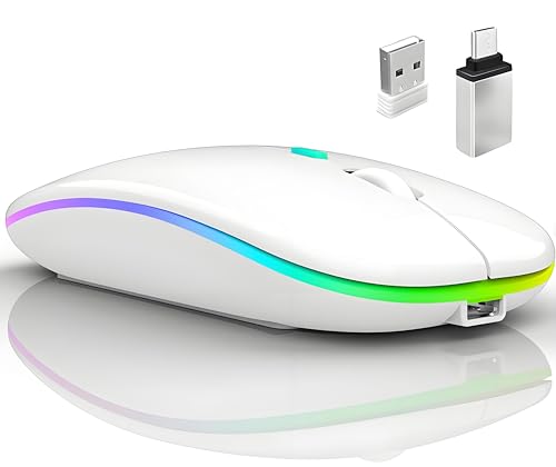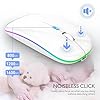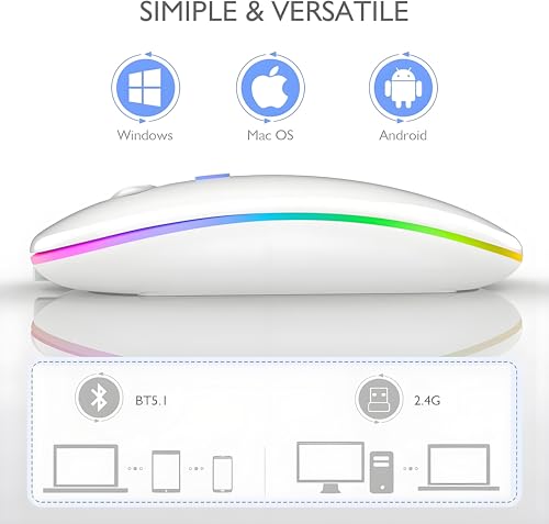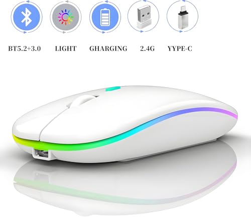 Especificaciones: Mouse inalámbrico Bluetooth para MacBook Air/Mac/Pro/portátil/computadora/PC, interruptor de modo dual recargable, mouse Bluetooth 5.2/3.0 y receptor USB de 2.4 GHz (blanco)